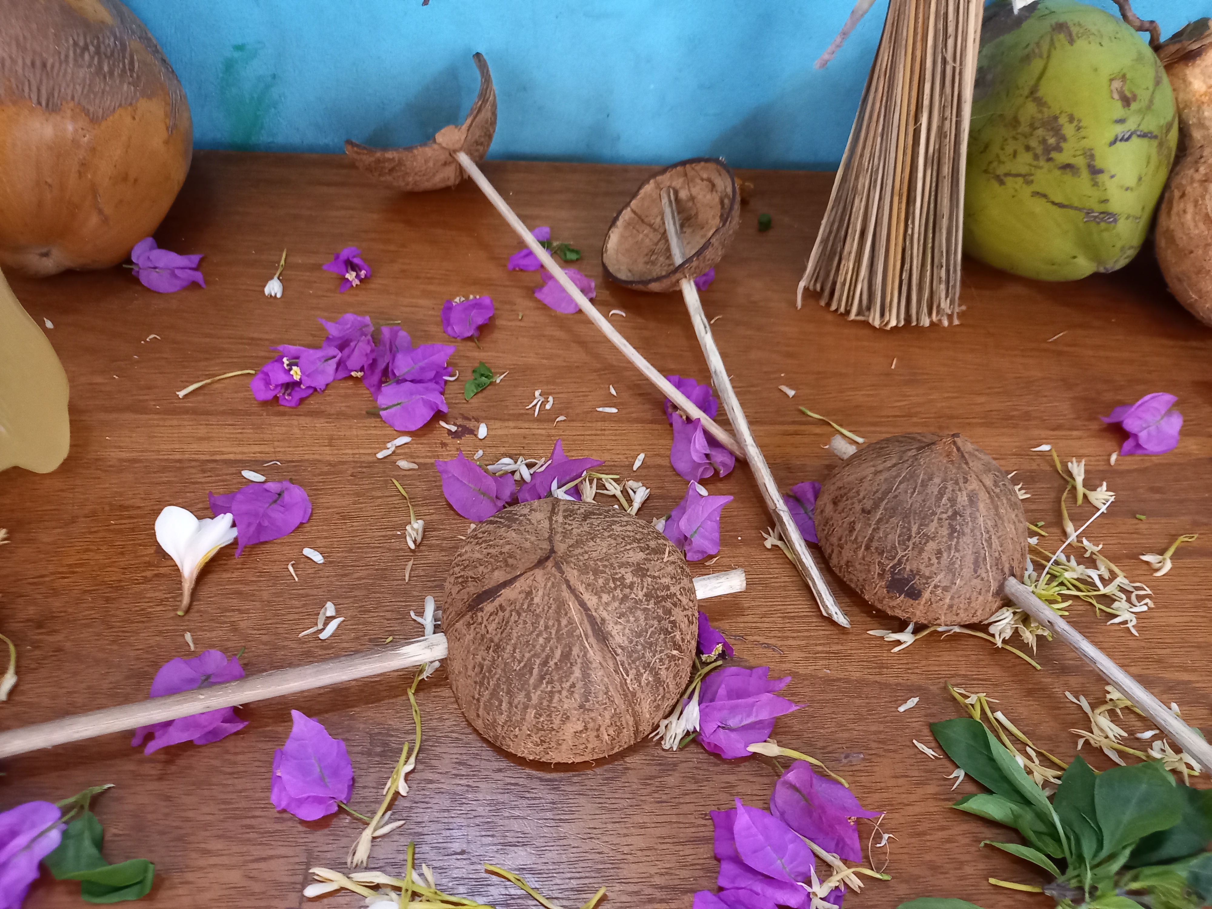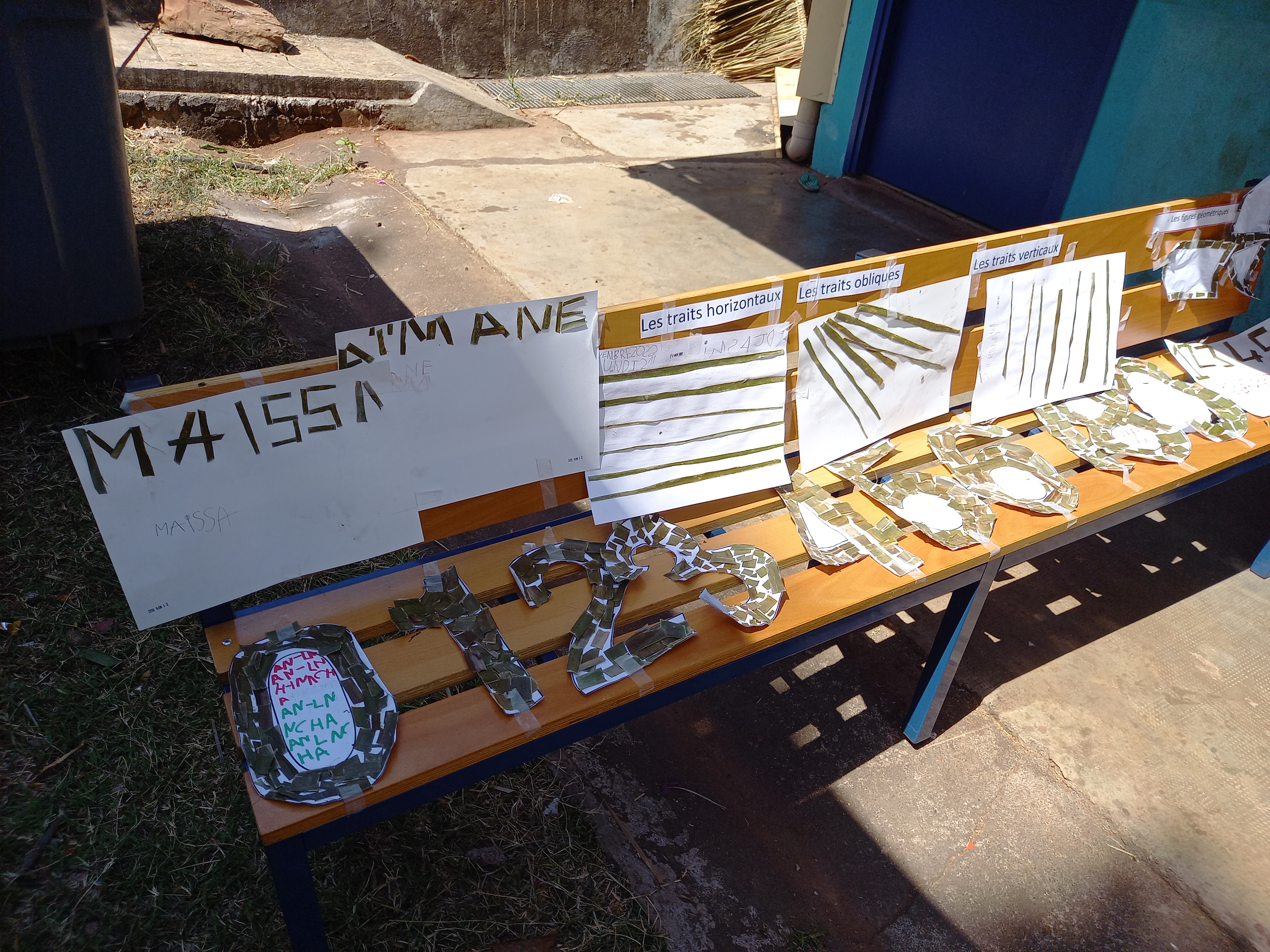 Les mathématiques ne sont pas en reste. Les feuilles de cocotier découpées en plusieurs morceaux ont permis de constituer les chiffres.