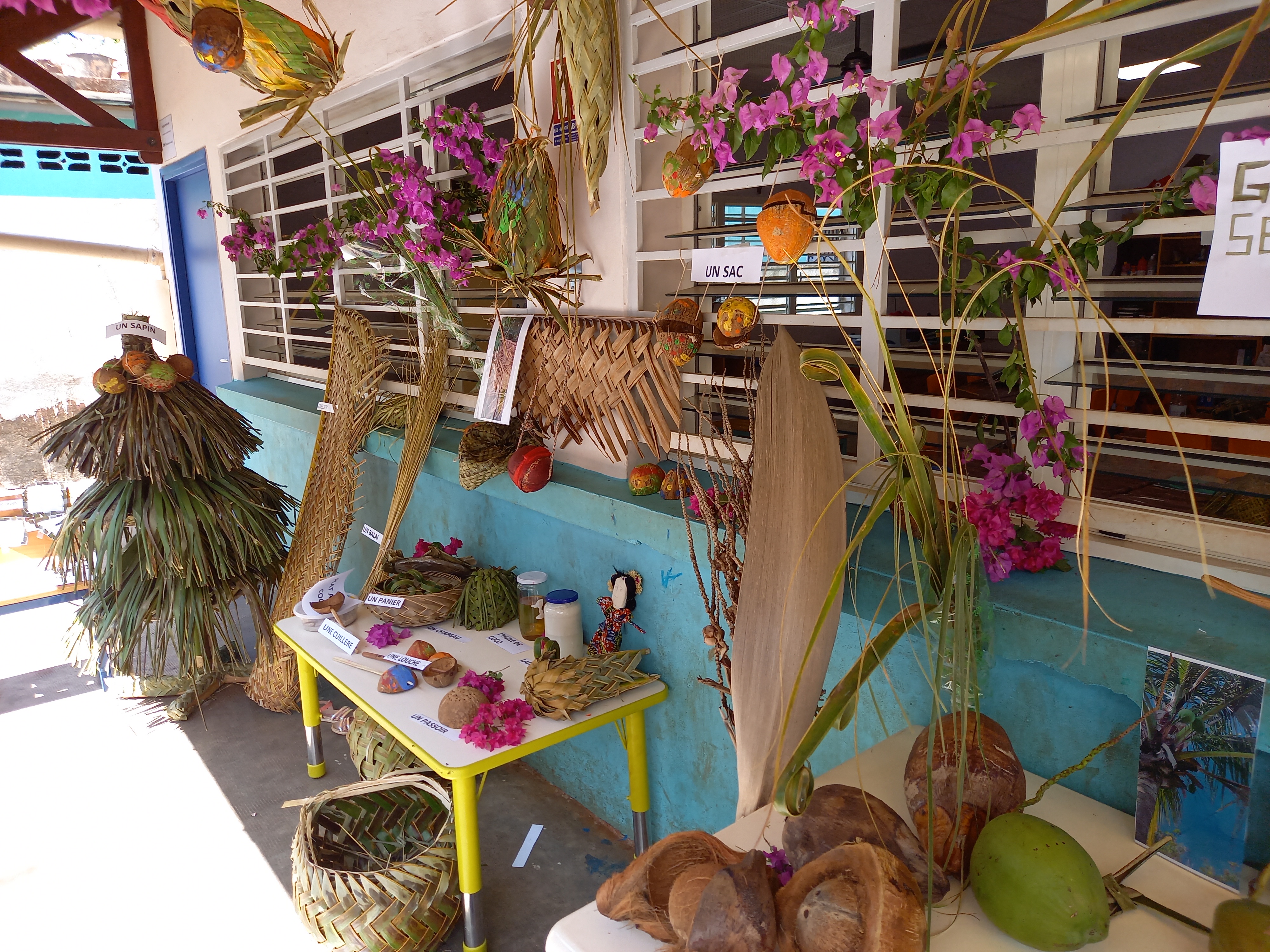 "Rayonner avec son territoire sous les cocotiers", tel est donc l’intitulé exact du travail qui a donné lieu à une exposition riche en imaginations, qui a montré à quel point les aspects constitutifs de l’arbre à coco sont exploitables pédagogiquement. Du balai en tiges à l’huile de coco, en passant par la corbeille, les jouets réalisés à partir de feuilles de cocotier et divers aliments à base de coco, la production pédagogique et artistique reste vaste et mérite largement le détour.